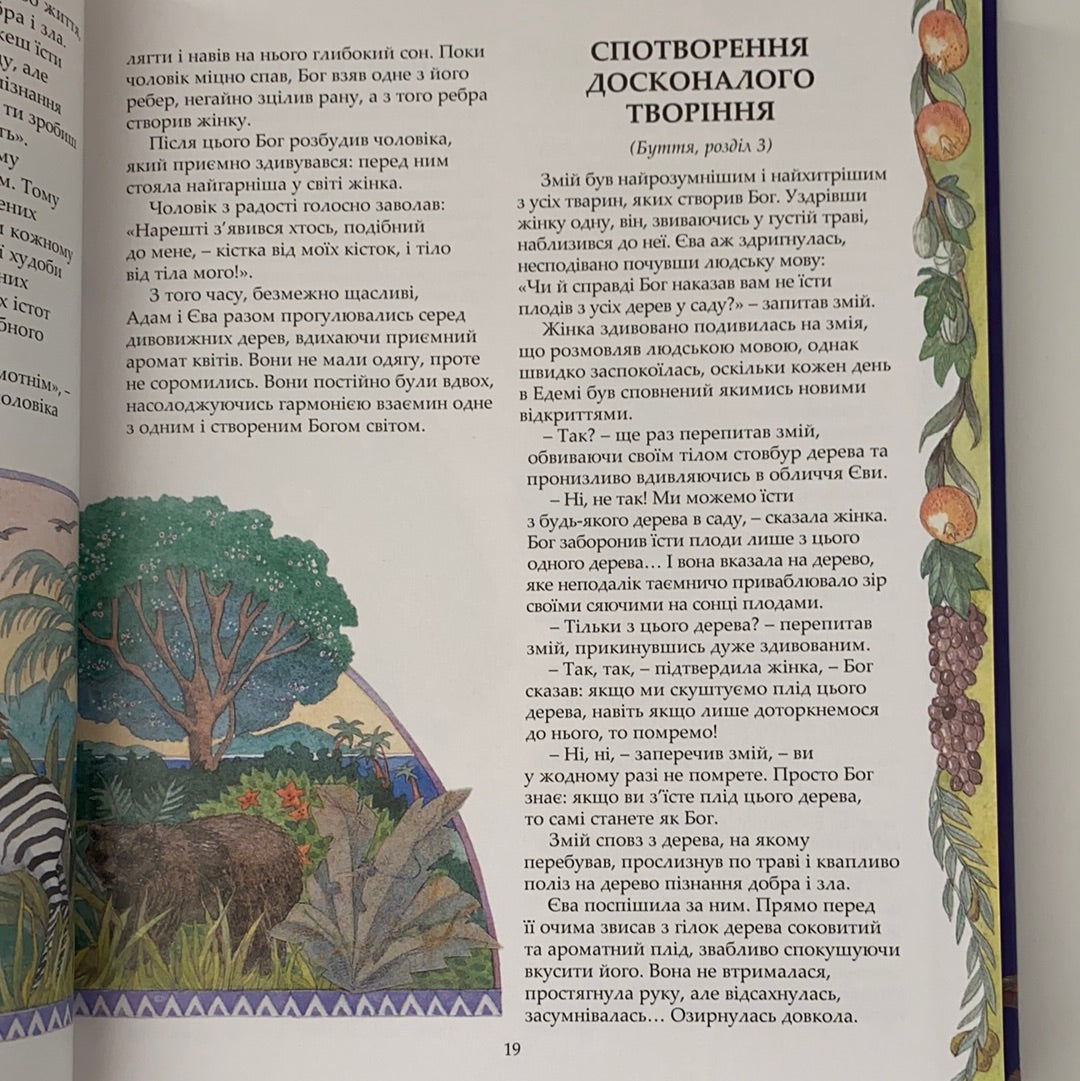 Не кожному дорослому під силу прочитати усю Біблію від корінця до корінця, зрозуміти, відчути справжність цієї Вічної Книги, зацікавитися і повірити. Маленьким дітям запропоновано велику кількість чудових ілюстрованих видань Біблії, у яких коротко описують лише деякі моменти чи окремі історії, які батьки зможуть прочитати своїм дітям.