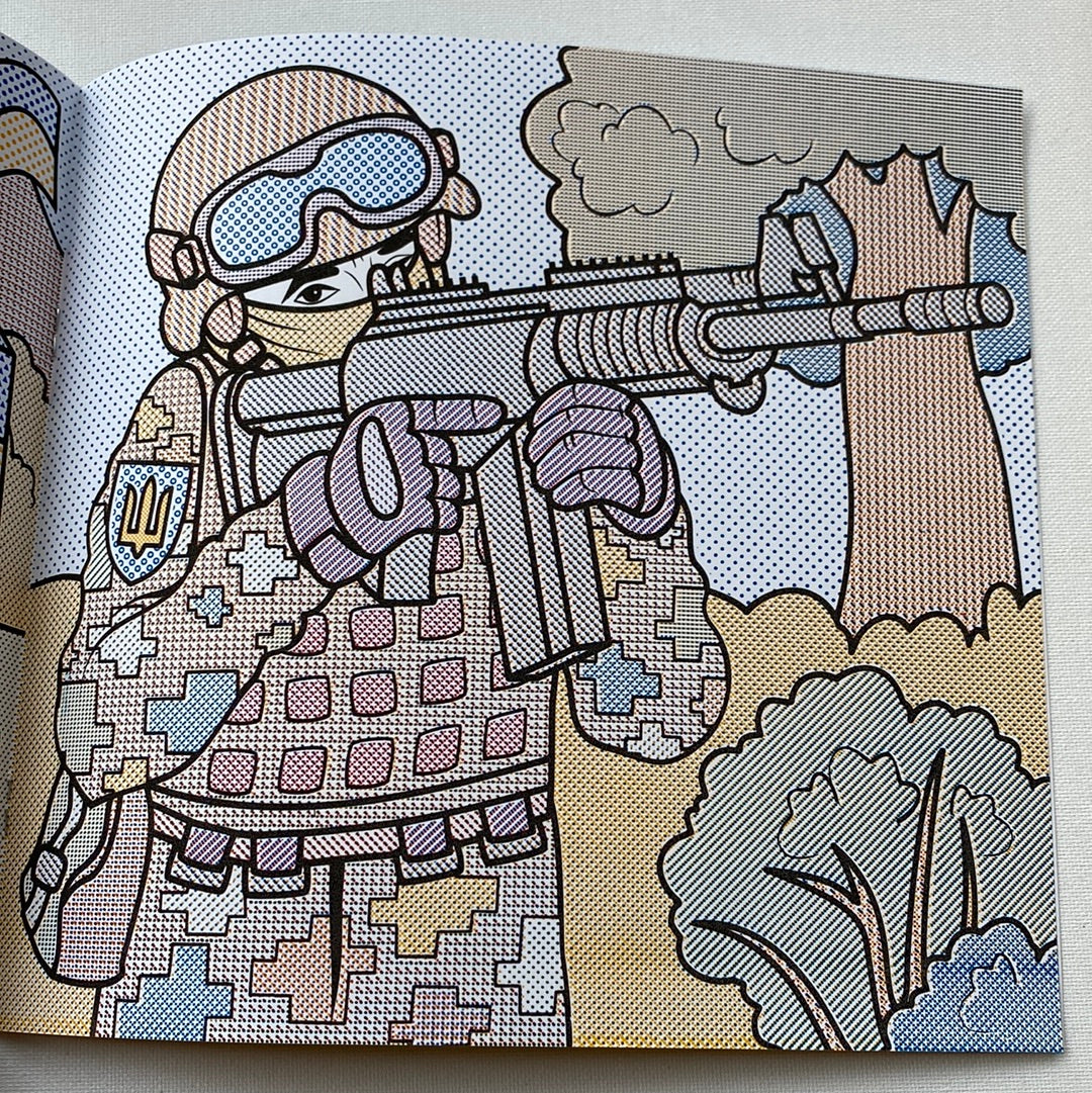 Розмальовка з кольоровими контурами, патріотичними сюжетами та сюжетами сучасної історії України.