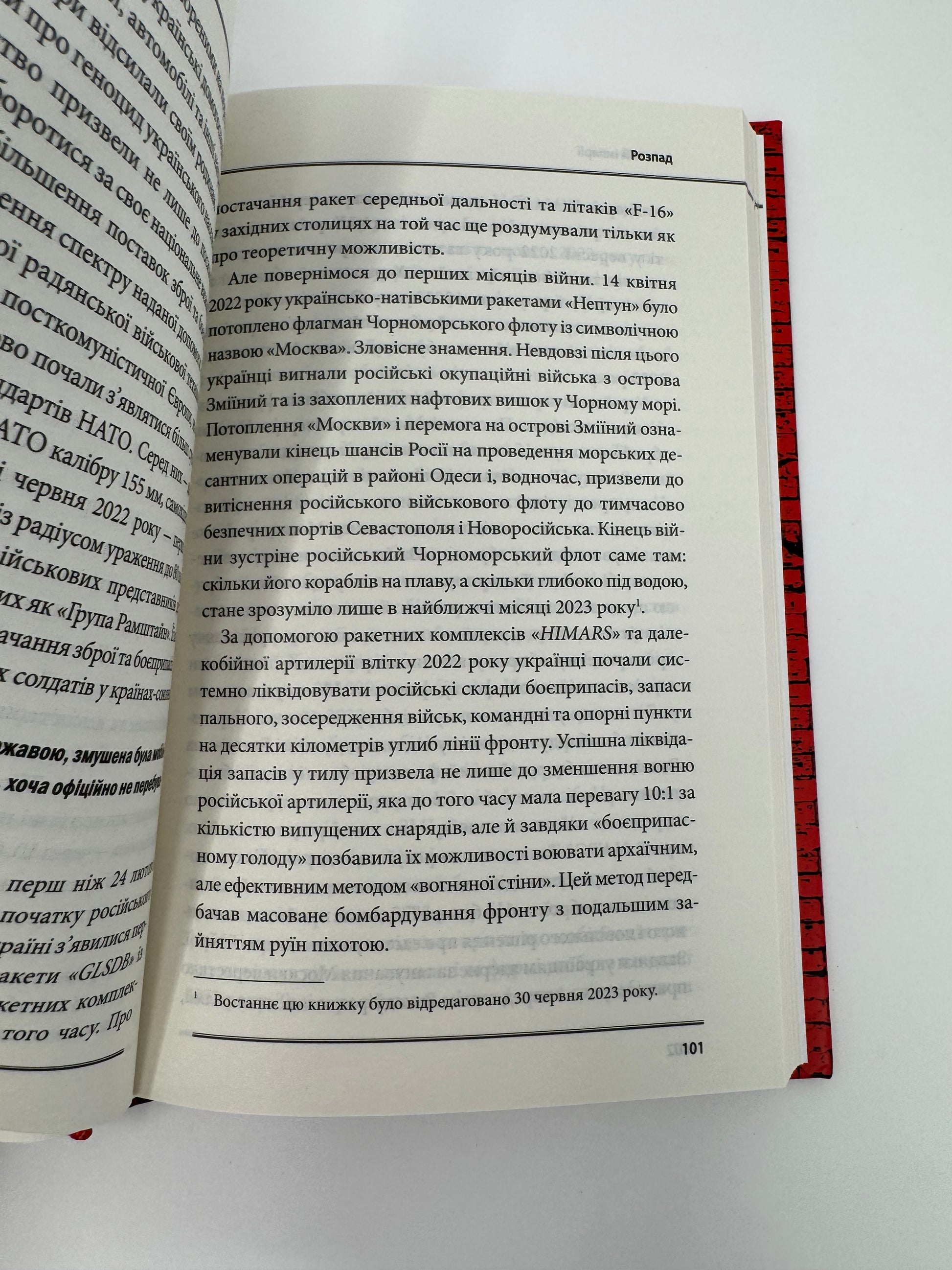 Автор аналізує глибокі системні проблеми, як-от економічна залежність від енергоресурсів, авторитарна політика та націоналістична ідеологія, які утримують Росію в її нинішньому стані. Месік проводить паралелі з падінням інших імперій і показує, як їхні внутрішні суперечності та зовнішні кризи призвели до руйнування. Експерт переконливо доводить, що Росія, попри військову та політичну потужність, є надзвичайно вразливою, і її розпад - це лише питання часу.