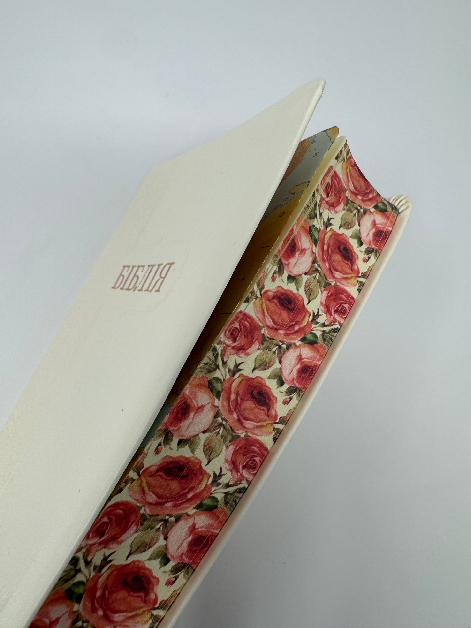 Біблія (світла обкладинка, з квітковим зрізом) / Купити українські Біблії в США, українська Біблія