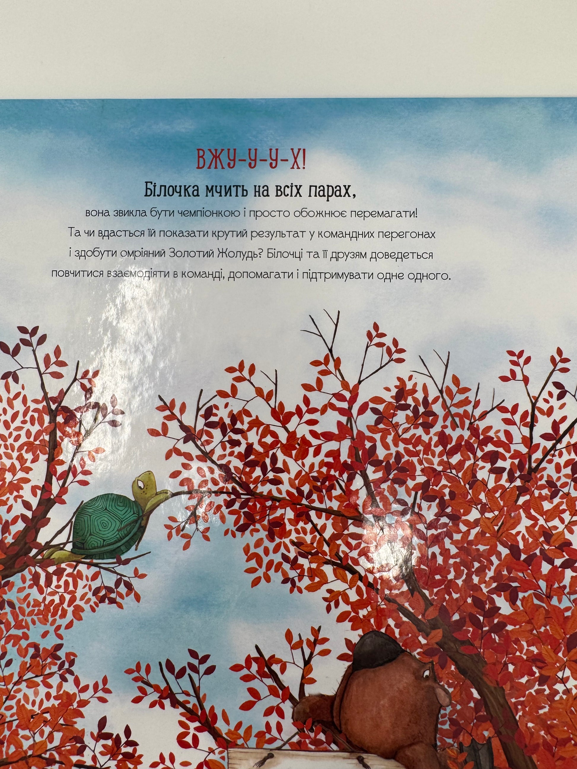 Білочка перемагає у перегонах за Золотий Жолудь щороку, вона звикла бути чемпіонкою й просто обожнює бути найпрудкішою. Та цього разу спортсменка матиме новий виклик: командні змагання. Білочка вчиться взаємодіяти в команді, допомагати і підтримувати.