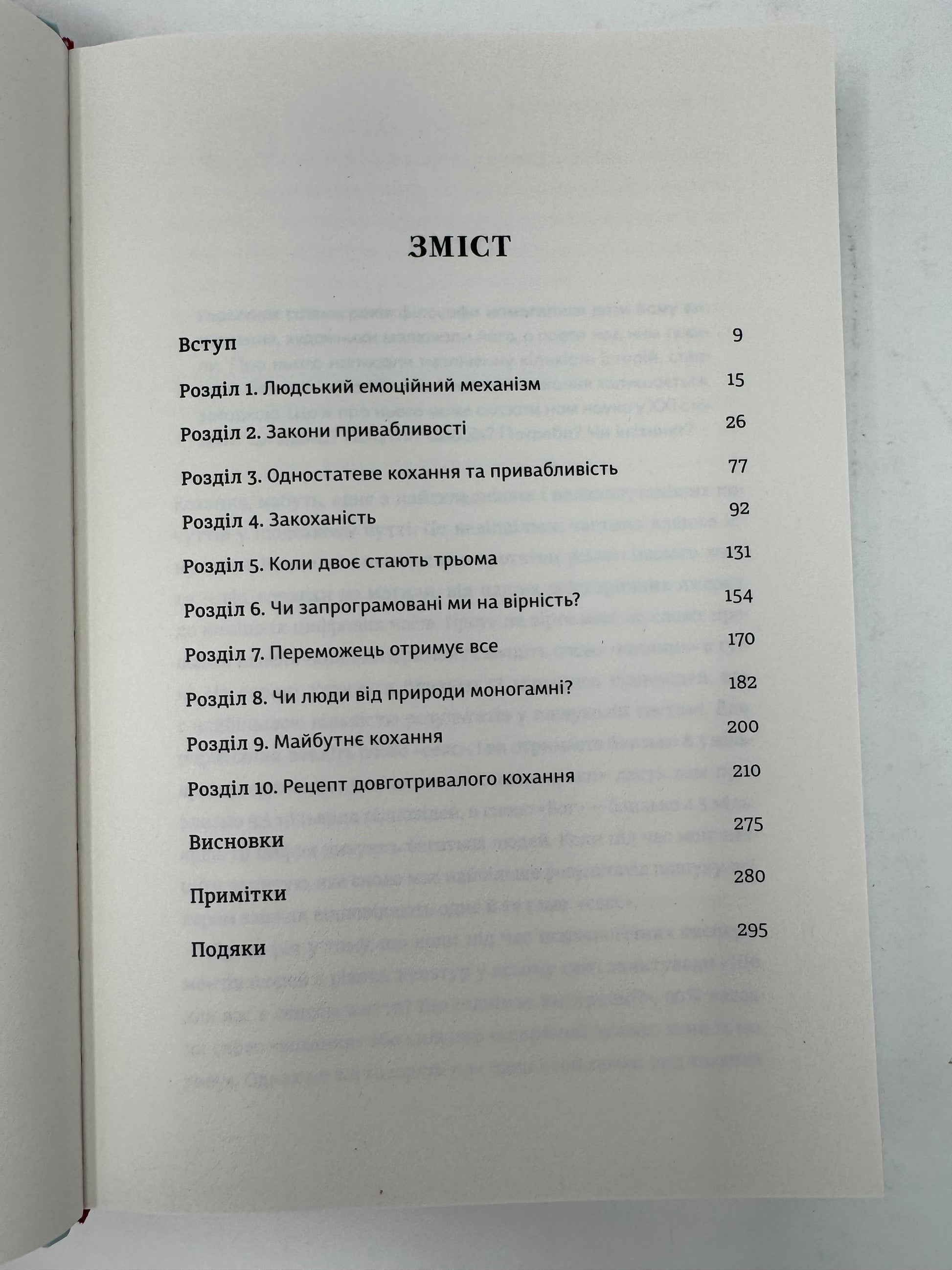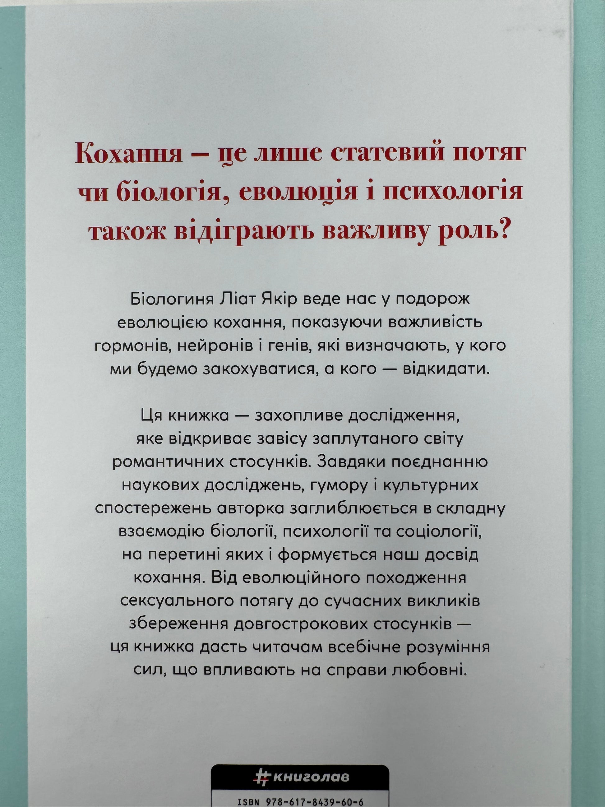 Ця книга — захопливе дослідження, яке відкриває завісу заплутаного світу романтичних стосунків. Завдяки поєднанню наукових досліджень, гумору і культурних спостережень авторка заглиблюється в складну взаємодію біології, психології та соціології, на перетині яких і формується наш досвід кохання. Від еволюційного походження сексуального потягу до сучасних викликів збереження довгострокових стосунків — ця книга дасть читачам всебічне розуміння сил, що впливають на справи любовні.