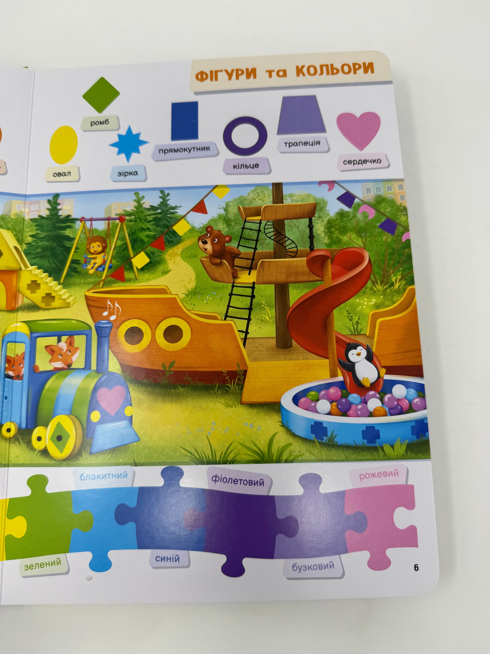 У цій енциклопедії малюк знайде великі яскраві ілюстрації, цікаві віршики та загадки, які дозволять йому з легкістю опанувати майже 300 нових слів з таких тем:
