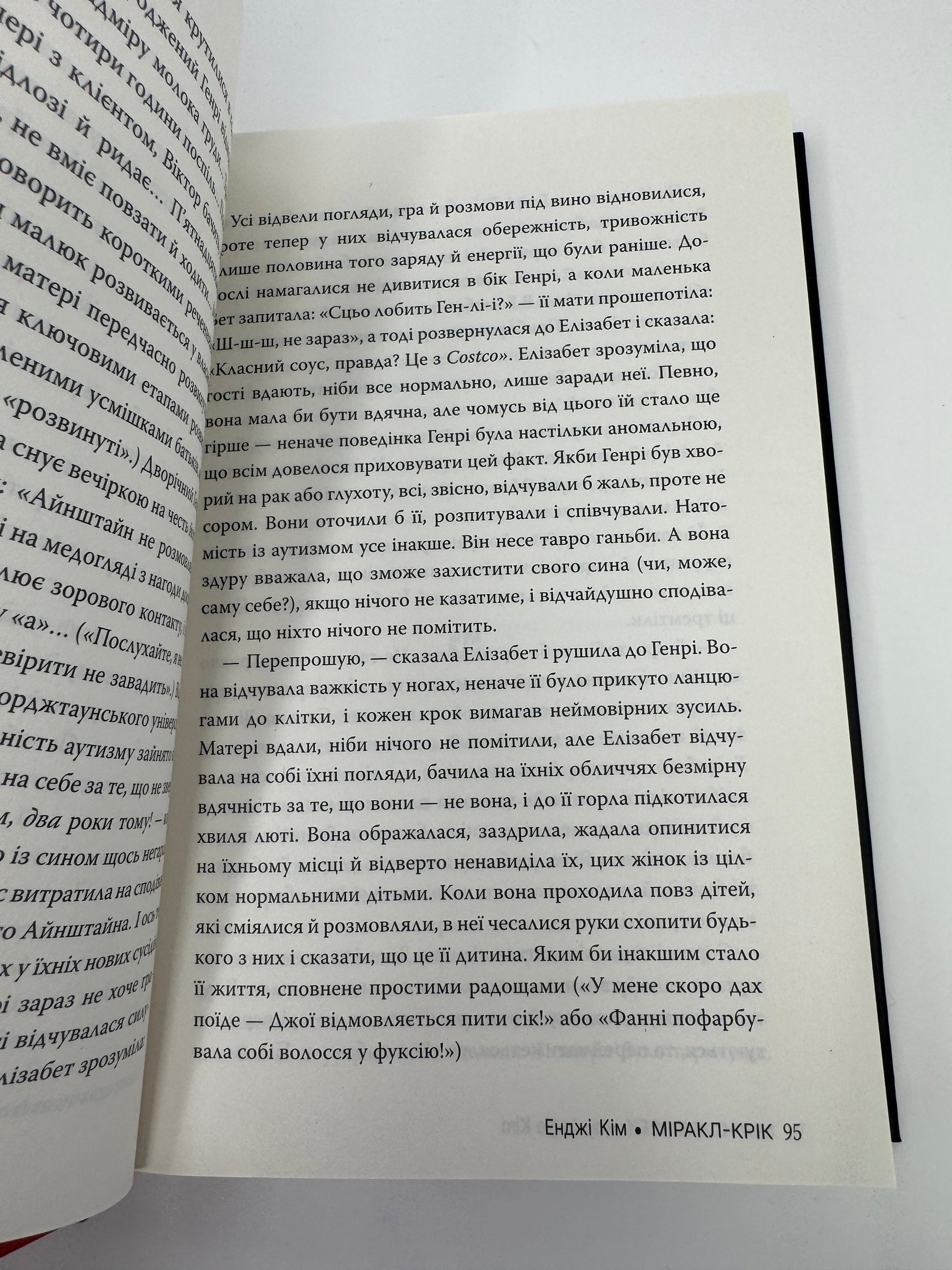 Але закручений сюжет — лише одна зі складових успіху роману. Енджі Кім як ніхто розуміється на міжрасових проблемах, а також на проблемах сімей, які виховують дітей з інвалідністю. Вона з неймовірною правдивістю показує світ, де жертовна любов тісно переплітається із втомою, заздрістю, соромом і навіть ненавистю. Ця гостра й щемлива історія не залишить байдужим нікого.