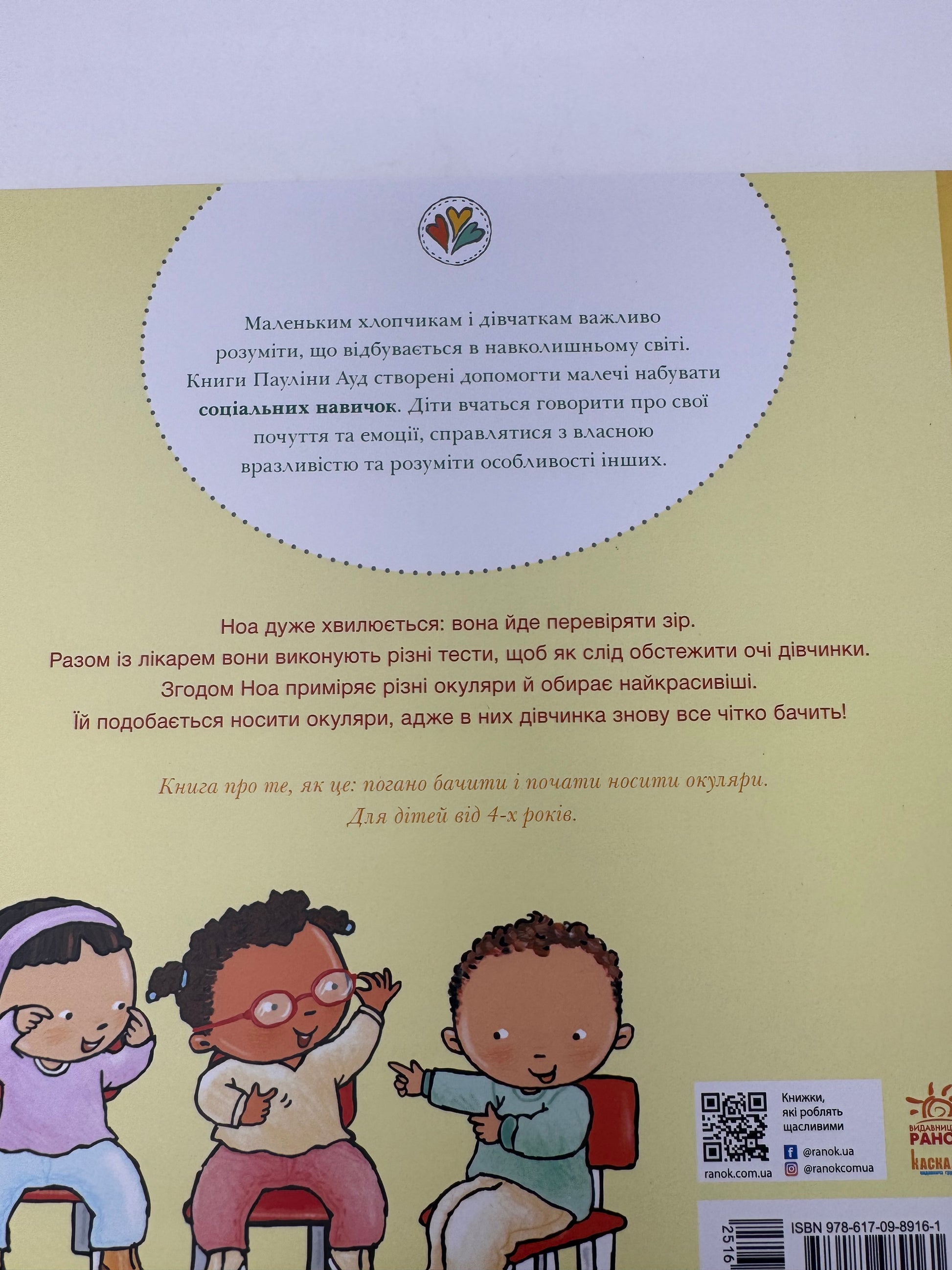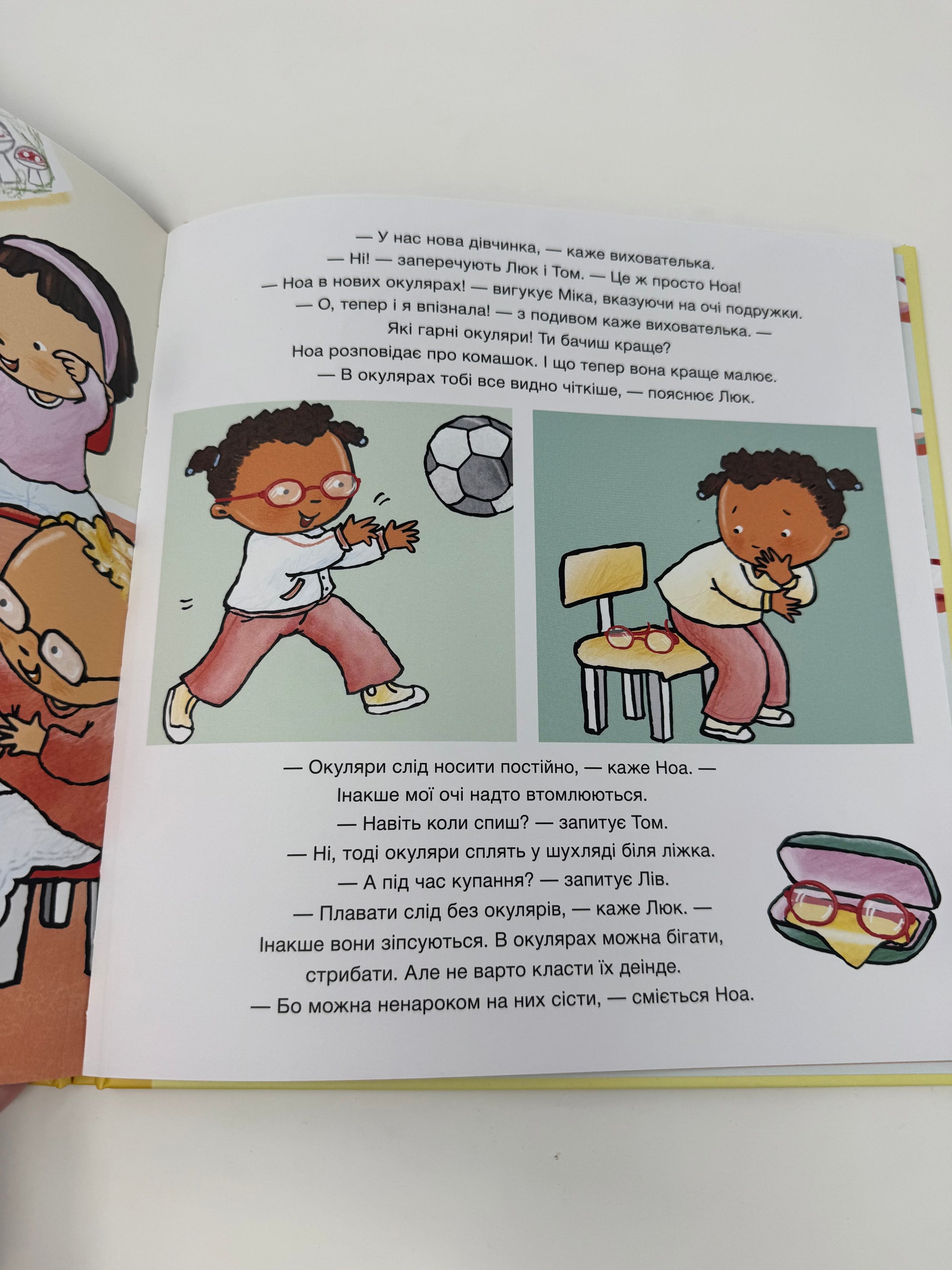 - Книжка у формі історії про дівчинку Ноа розповість, чому люди носять окуляри й допоможе дитині з вадами зору адаптуватися до їхнього носіння.