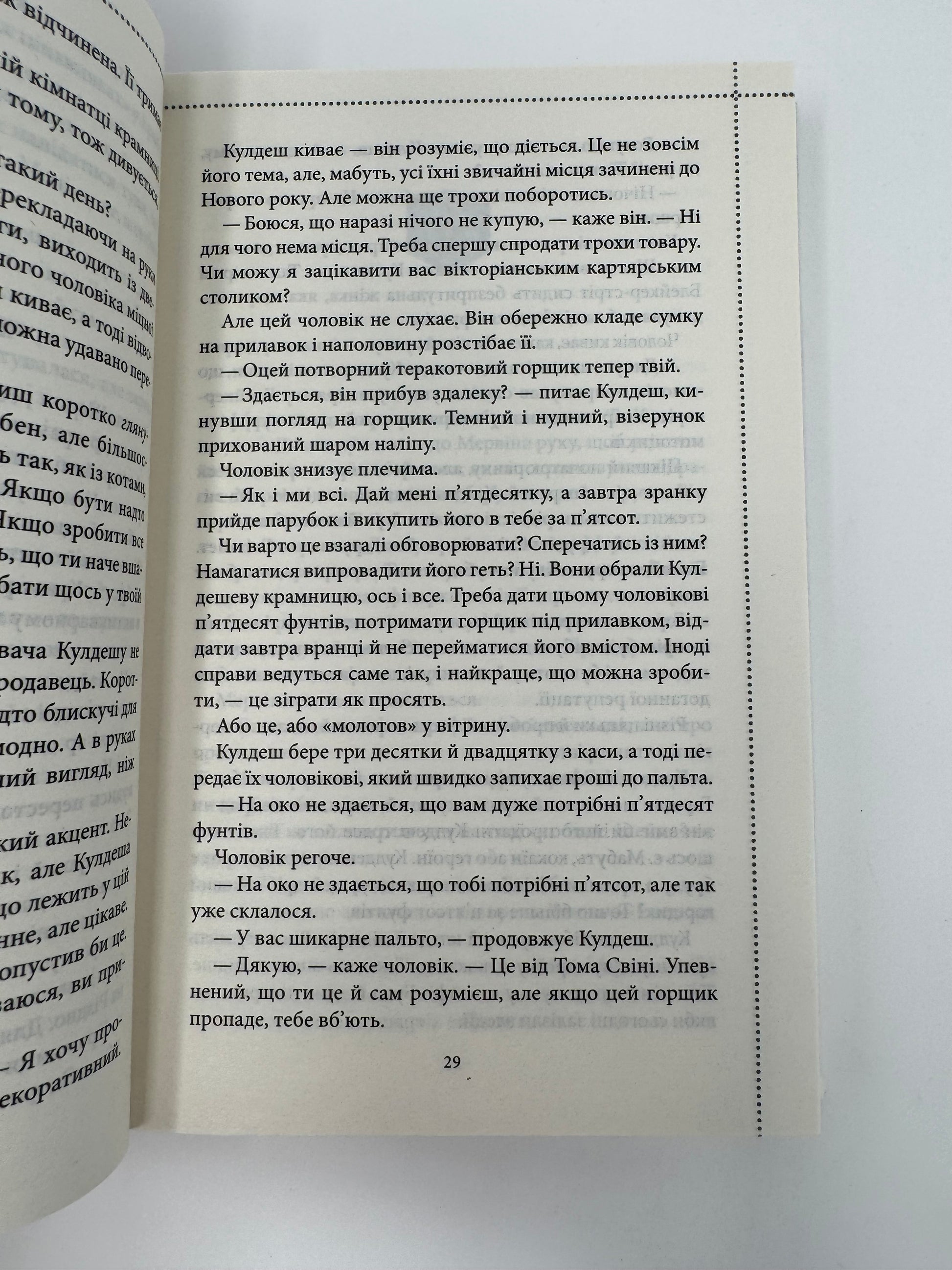 Для «Клубу вбивств по четвергах» настали складні часи. Четвірку детективів приголомшує новина: убито їхнього давнього друга. Ба більше: таємничий пакунок, який той охороняв, викрадено. Пошуки розгадки змушують детективів-аматорів зануритися в секрети антикварного бізнесу, де мистецтво обману таке ж давнє й вишукане, як і самі старожитності.
