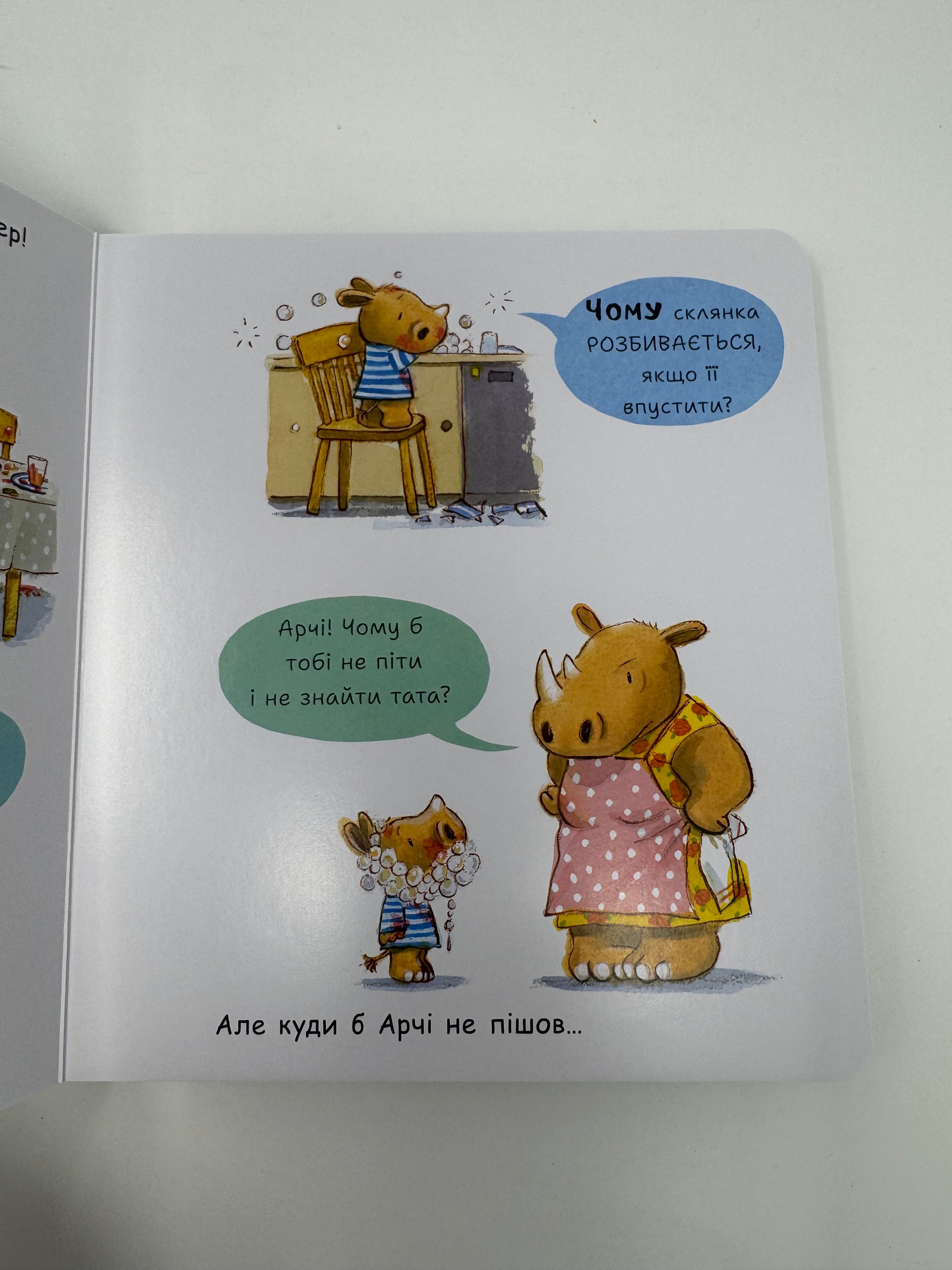 Скільки запитань на день ставить вам ваш малюк? У маленького носорога Арчі їх сила-силенна! Чому бруд такий липкий? Чому склянка розбивається, якщо її впустити? Чому з хліба сиплються крихти? Опинившись у музеї, Арчі ставить удвічі більше запитань. І на всі їх, звісно, мають відповісти батьки. Як добре, що малюк іноді спить. Кумедна книжка про маленького запитайлика неодмінно прикрасить вашу колекцію книжок-картонок і подарує ще чимало запитань від чомусика.