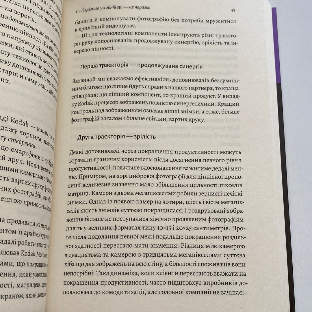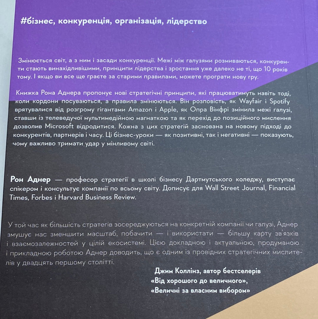 Сьогодні гра за старими правилами дорівнює поразці, яка надто дорого обійдеться вашому бізнесу. Щоб досягти успіху в цьому світі, вам потрібно змінити свій погляд на конкуренцію, зростання та лідерство. Експерт зі стратегії Рон Аднер у книжці «Перемогти у правильній грі. Як тримати удар у мінливому світі» пропонує новий спосіб мислення, ілюструючи проривні ідеї переконливими прикладами.
