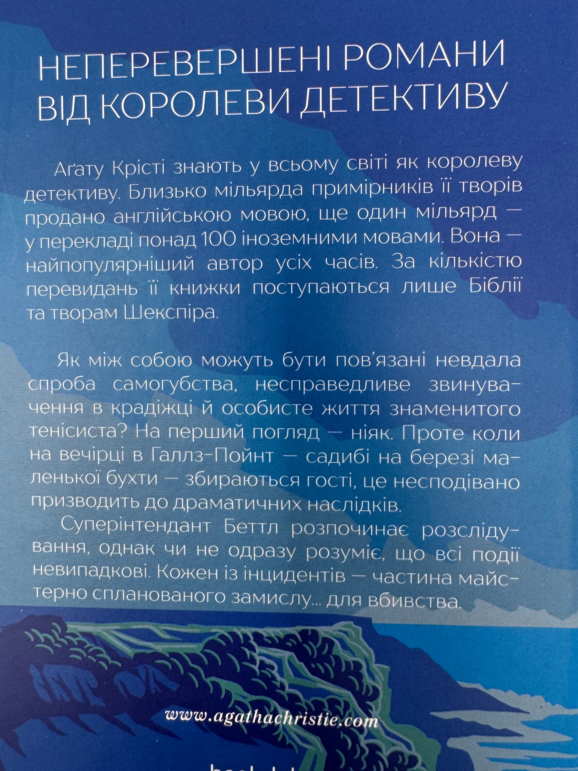 Як між собою можуть бути пов’язані невдала спроба самогубства, несправедливе звинувачення в крадіжці й особисте життя знаменитого тенісиста? На перший погляд - ніяк. Проте коли на вечірці в Галлз-Пойнт - садибі на березі маленької бухти - збираються гості, це несподівано призводить до драматичних наслідків.